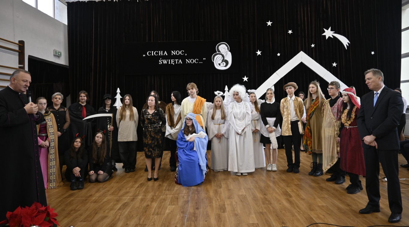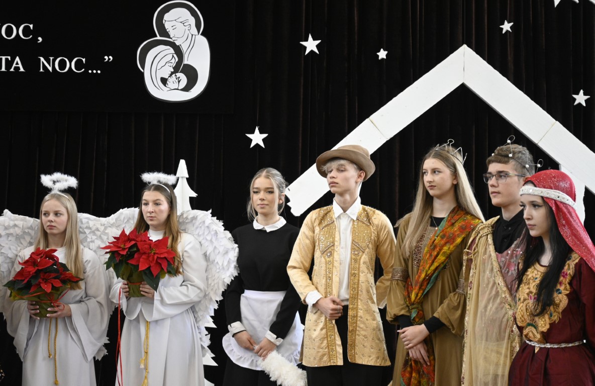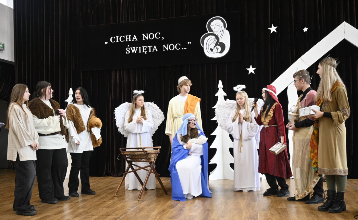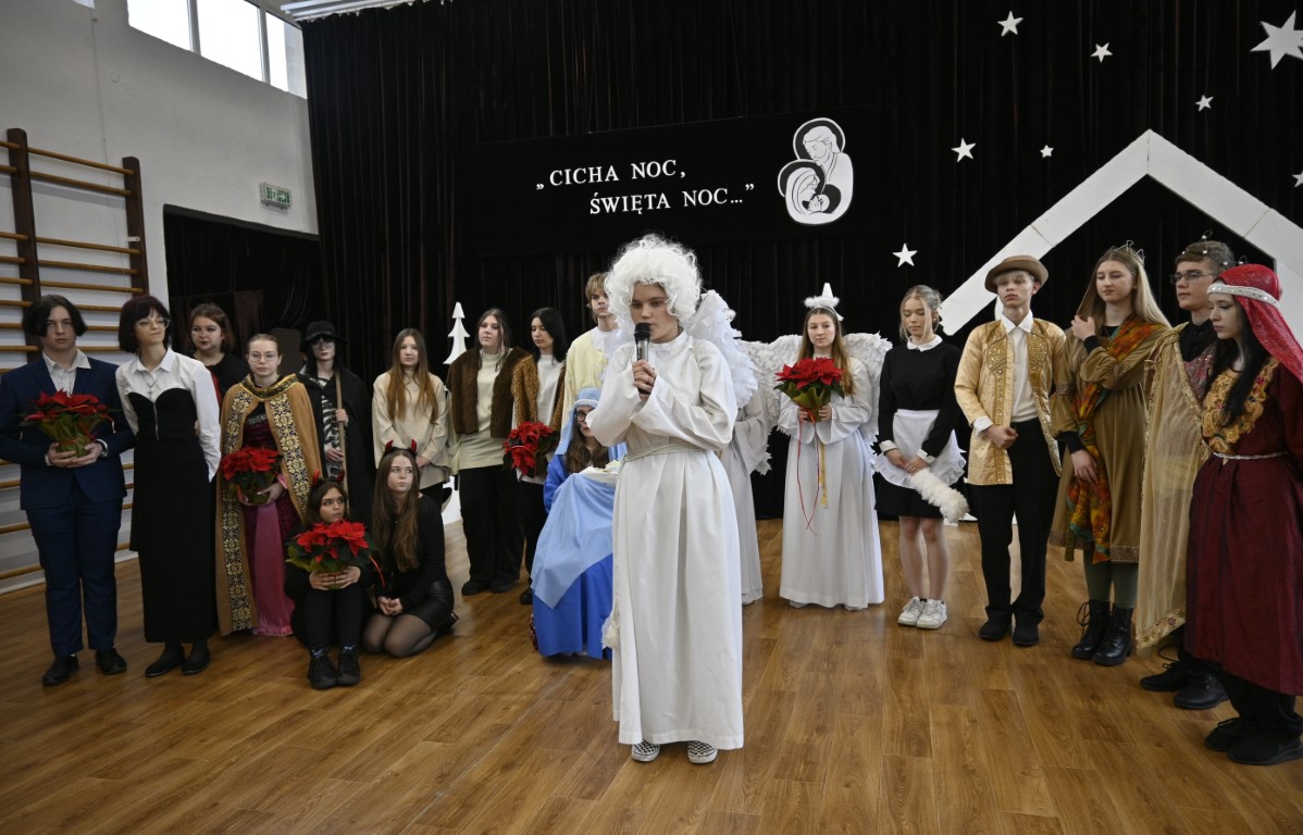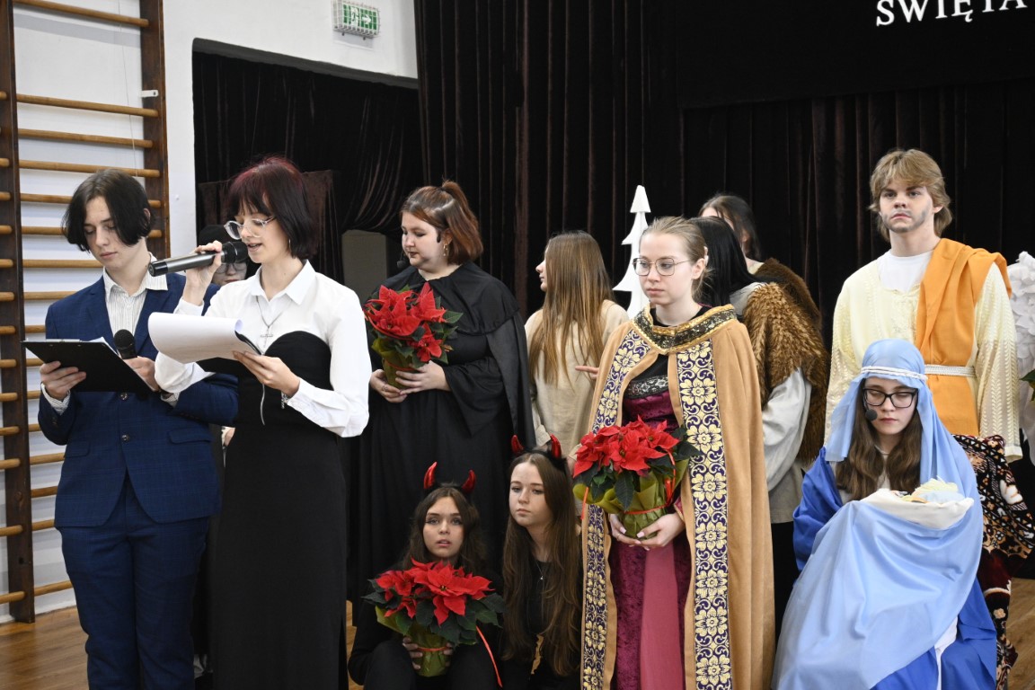 Czy pasterze mogą się lenić, a do tego spierać z królami? Kto podsuwa złe pomysły Herodowi? Odpowiedzi na te pytania zaprezentowali uczniowie naszej szkoły w teatralnym widowisku pt. „Oszaleli Anieli”. W tegorocznych jasełkach ukazana została tajemnica narodzin Chrystusa w zaskakujący sposób. Brawurowa akcja, żywa narracja i barwne stroje oddały klimat tamtych wydarzeń sprzed 2000 lat.
