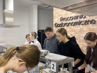 4 grudnia 2025r. w naszej szkole odbył się Konkurs Wiedzy o Żywieniu dla uczniów klas ósmych szkół podstawowych. Celem konkursu było wykształcenie wśród młodzieży szkolnej, potrzeby dbania o własne zdrowie oraz promowanie zdrowego stylu życia. Organizatorzy konkursu zachęcali do zapoznania się z bogatą ofertą kierunków gastronomicznych oferowanych w Zespole Szkół Zawodowych i Ogólnokształcących w Biłgoraju. Konkurs składał się z dwóch części: pisemnej i praktycznej. Uczniowie klas ósmych mieli możliwość rozwinąć swoje zainteresowania z zakresu żywienia i żywności -rozwiązując test on-line. W części praktycznej konkursu mogli pochwalić się wiedzą oraz umiejętnościami z zakresu gastronomii i kelnerstwa wykonując zadania w nowocześnie wyposażonych pracowniach: kelnerskiej i gastronomicznej. Najważniejszą częścią konkursu było oczywiście ogłoszenie wyników i wręczenie cennych nagród!