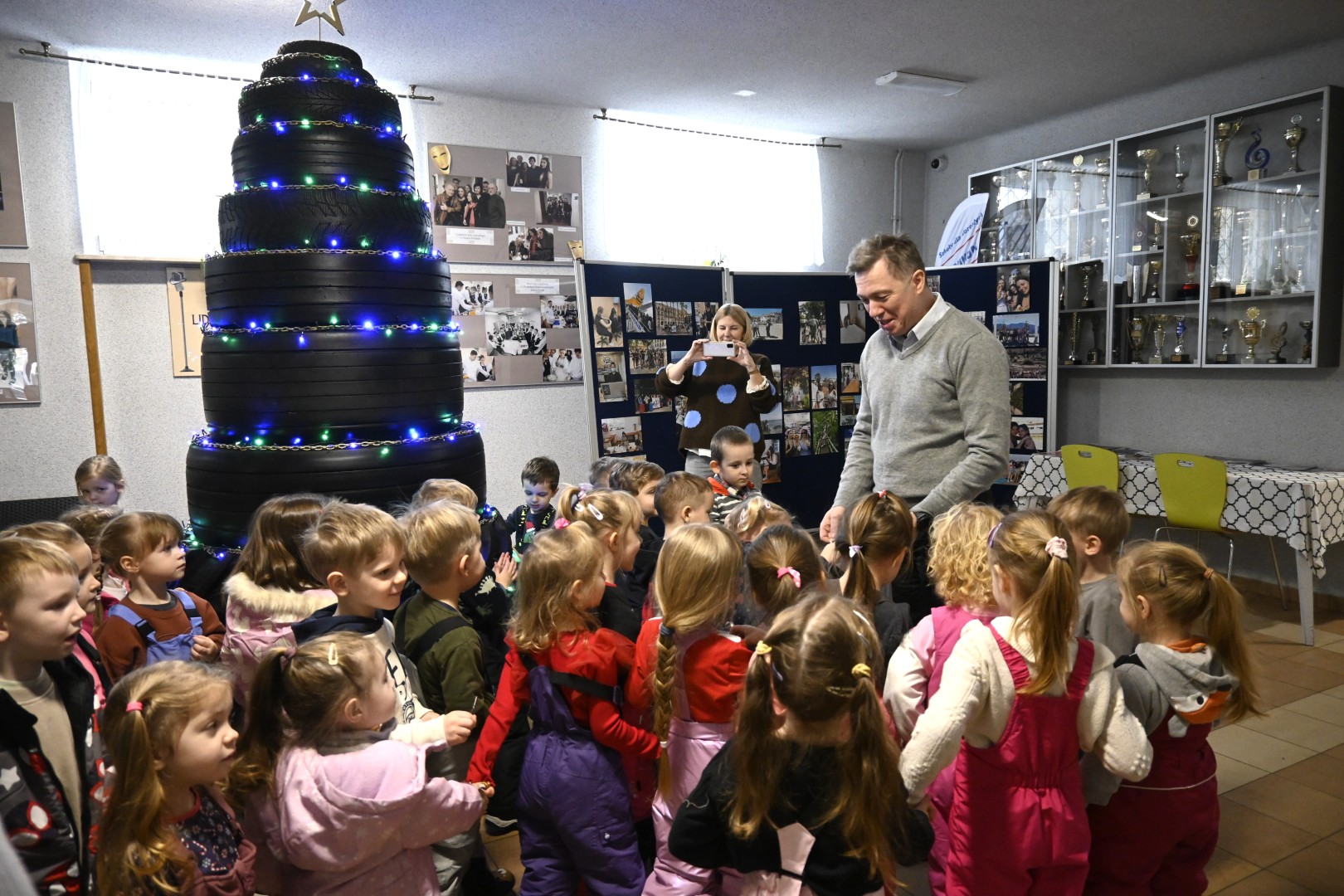 Na zakończenie spotkania Pan Dyrektor obdarował wszystkich przedszkolaków słodkimi upominkami. Dodatkowo chłopcy otrzymali metalowe motocykle wykonane przez uczniów szkoły branżowej I stopnia w zawodzie mechanik-monter maszyn i urządzeń, natomiast dziewczynki – piękne sukieneczki uszyte przez uczennice technikum w zawodzie stylista oraz technikum przemysłu mody.