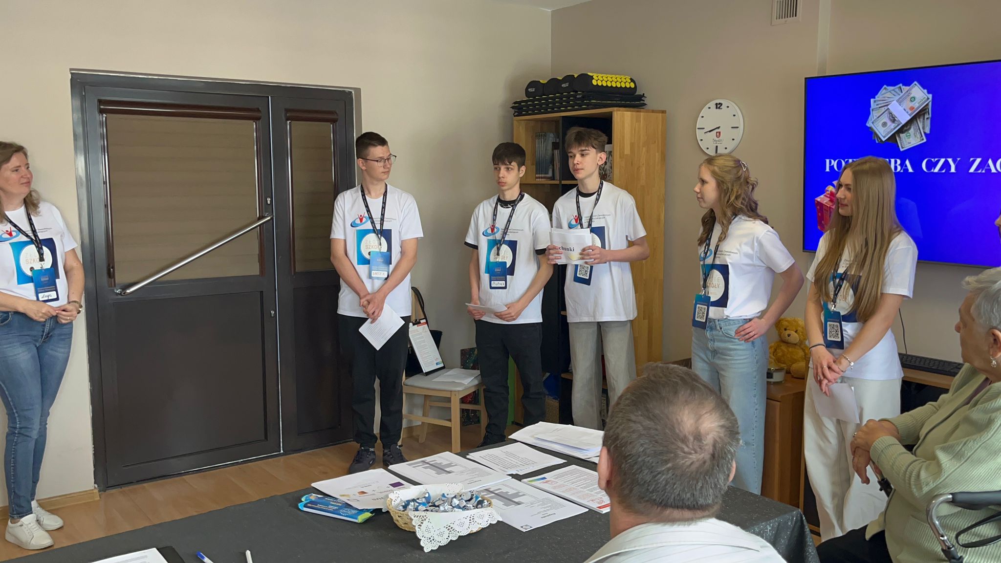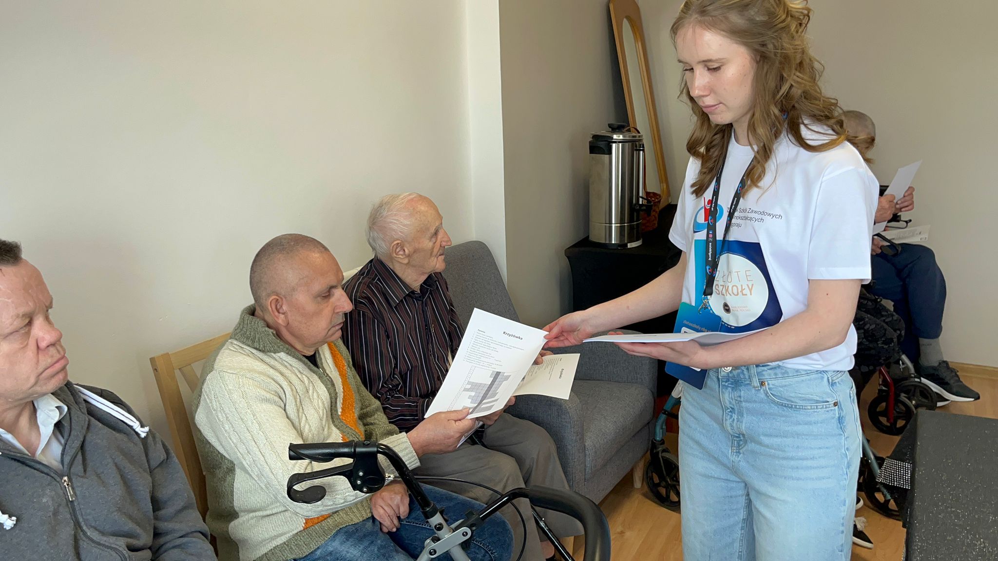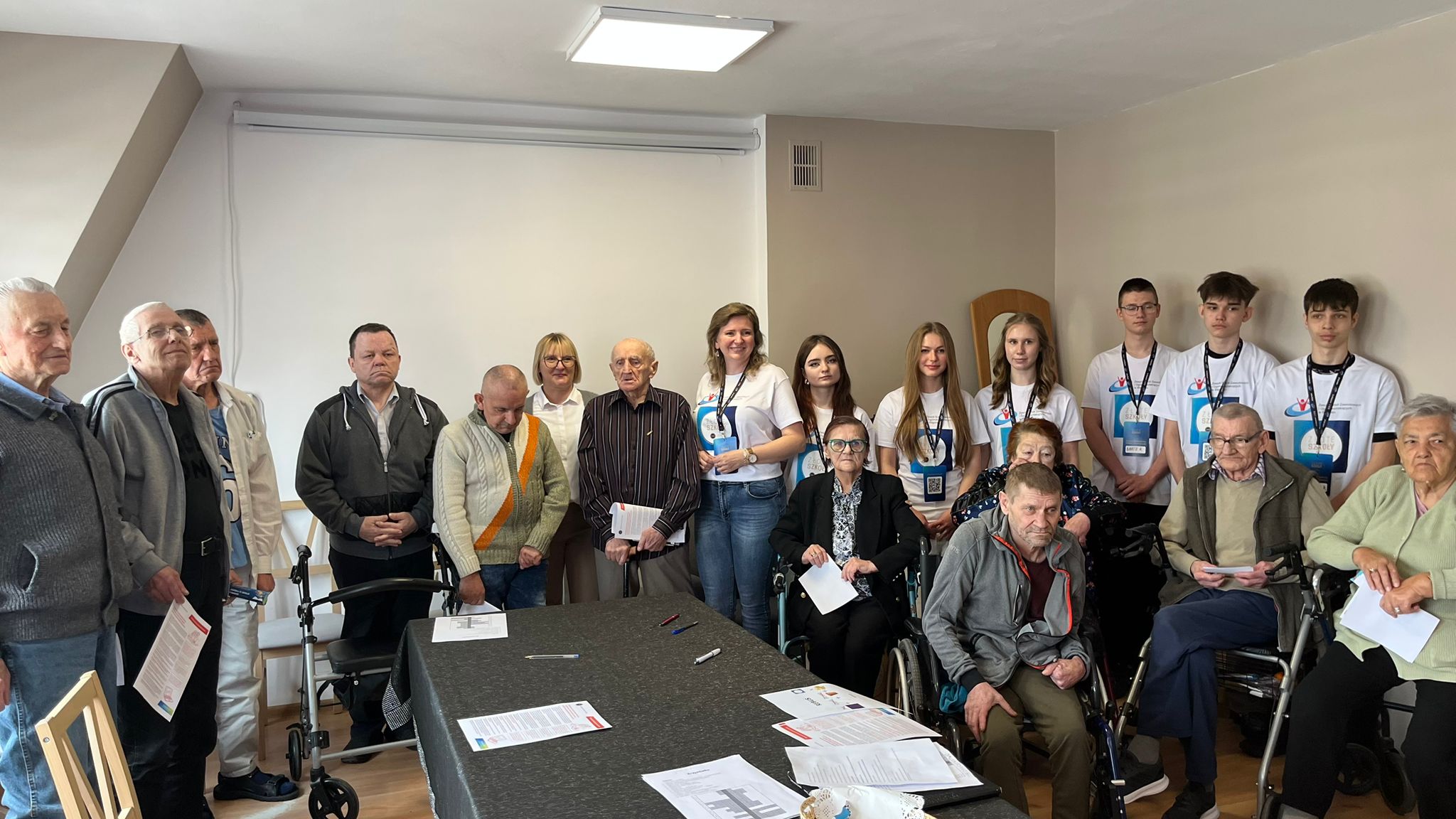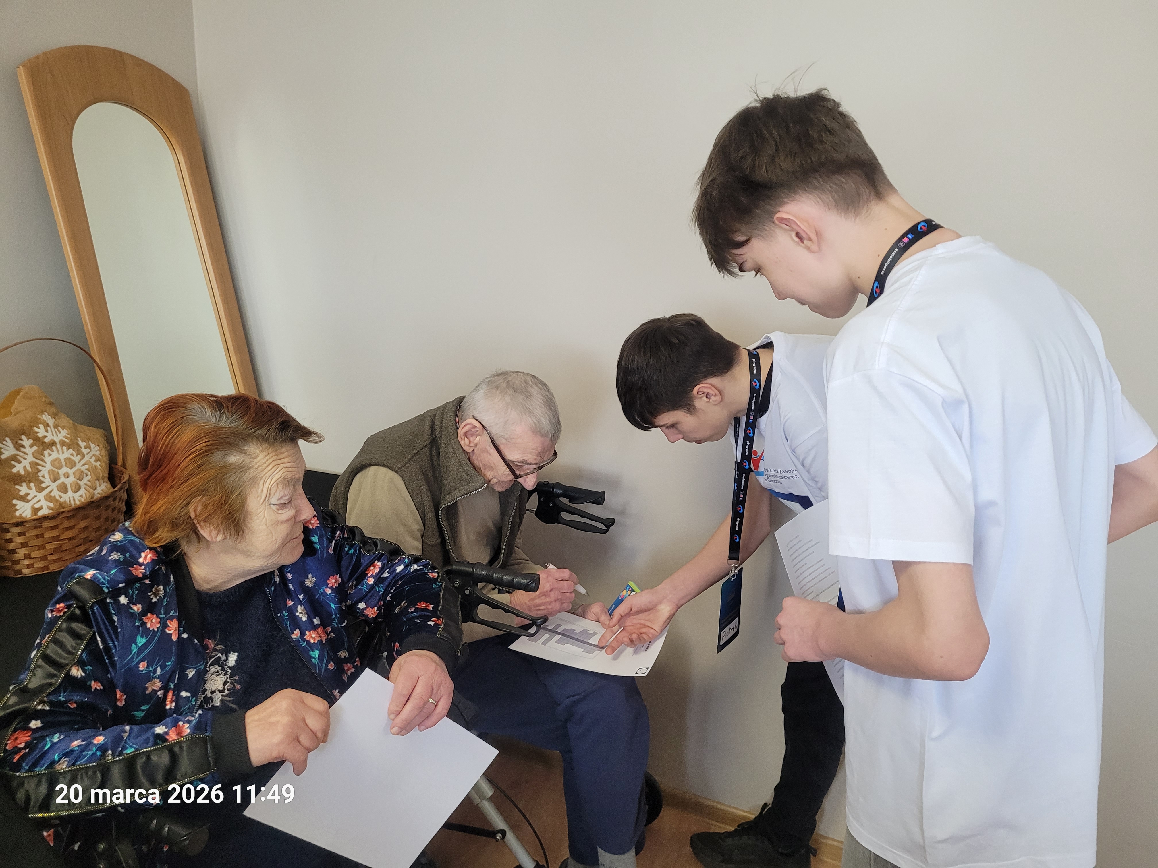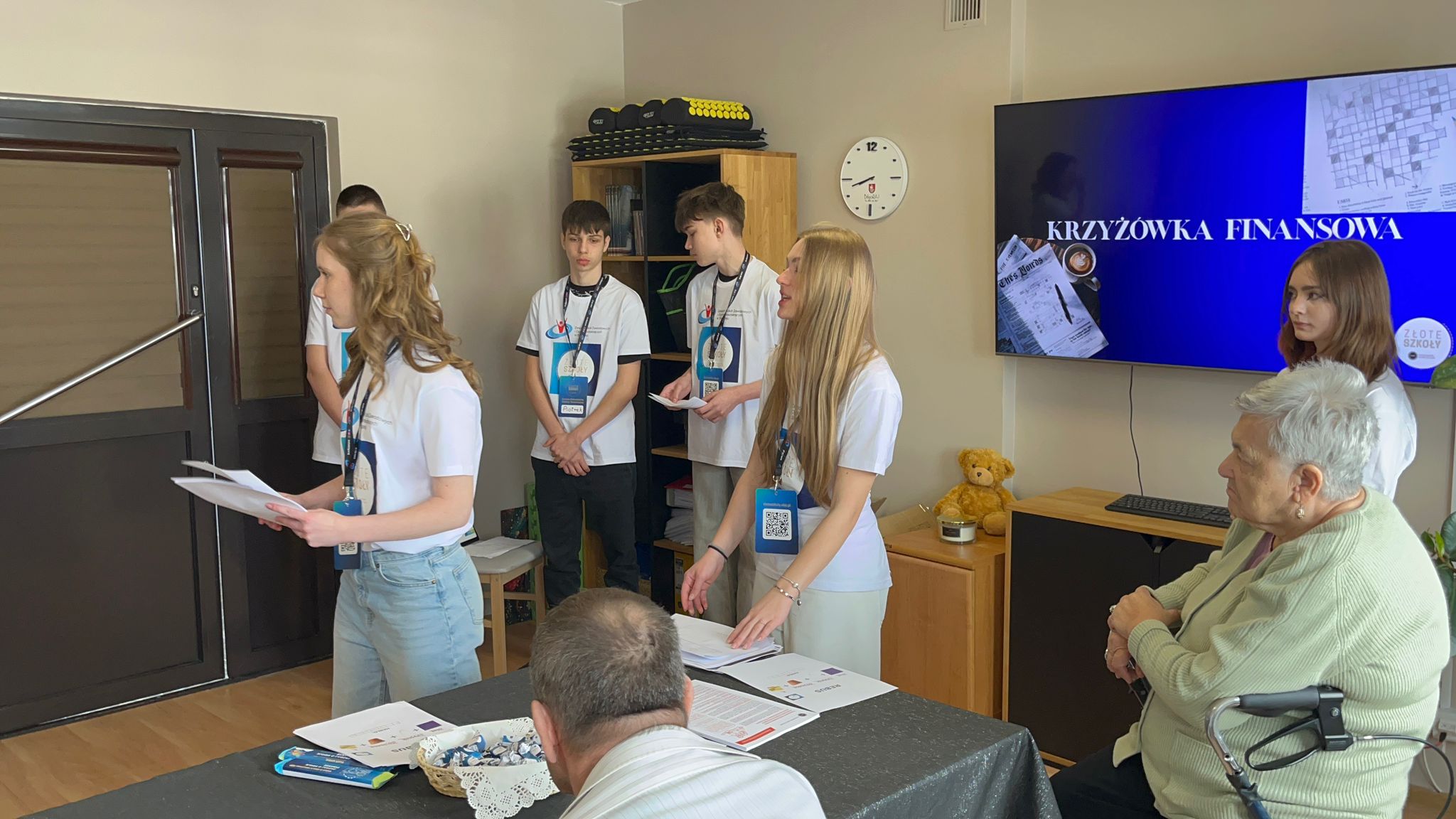 Uczniowie naszej szkoły dzielą się wiedzą o bezpieczeństwie finansów osobistych w Domu Pomocy Społecznej dla Kombatantów w Biłgoraju w ramach Programu „Złote Szkoły NBP”
