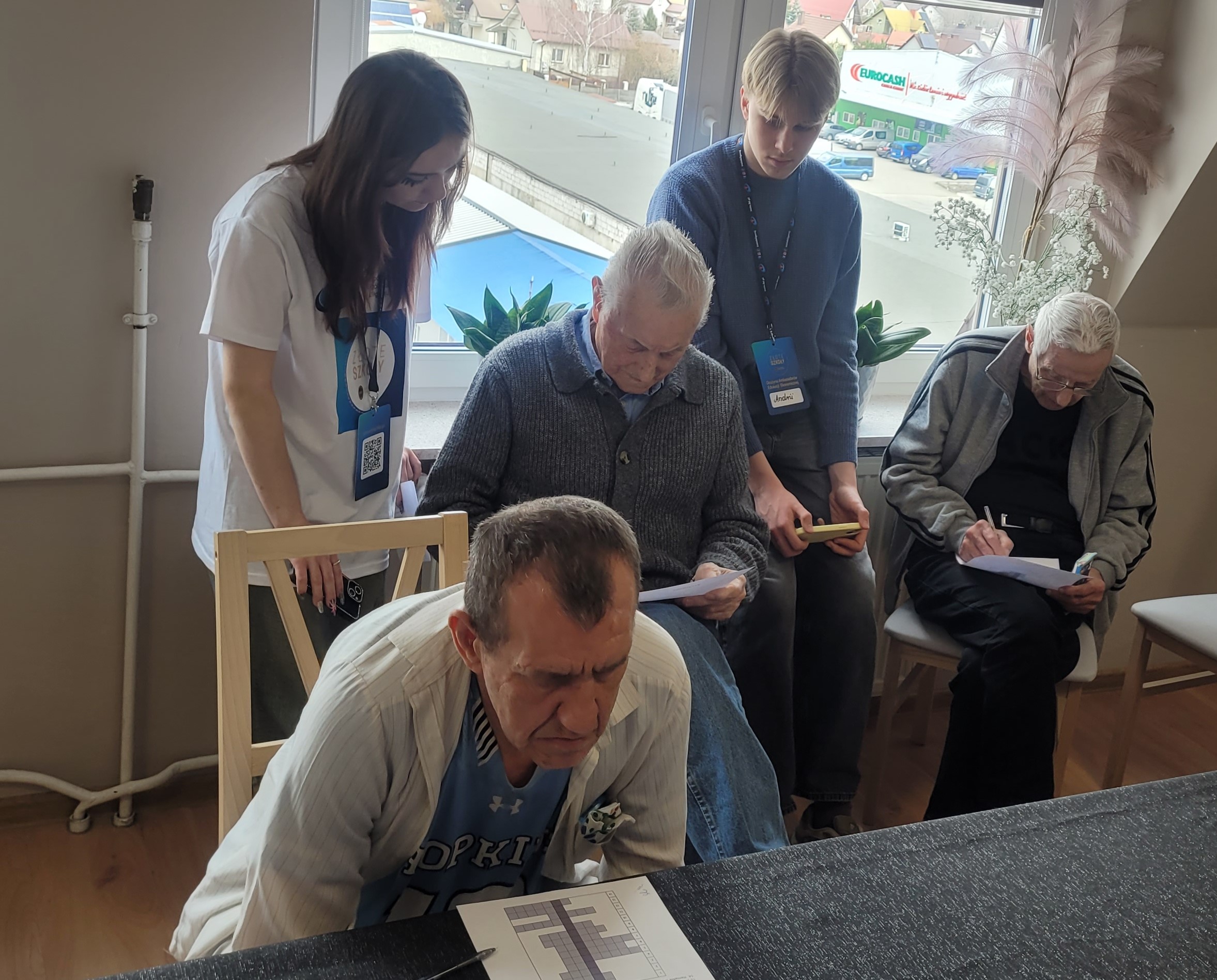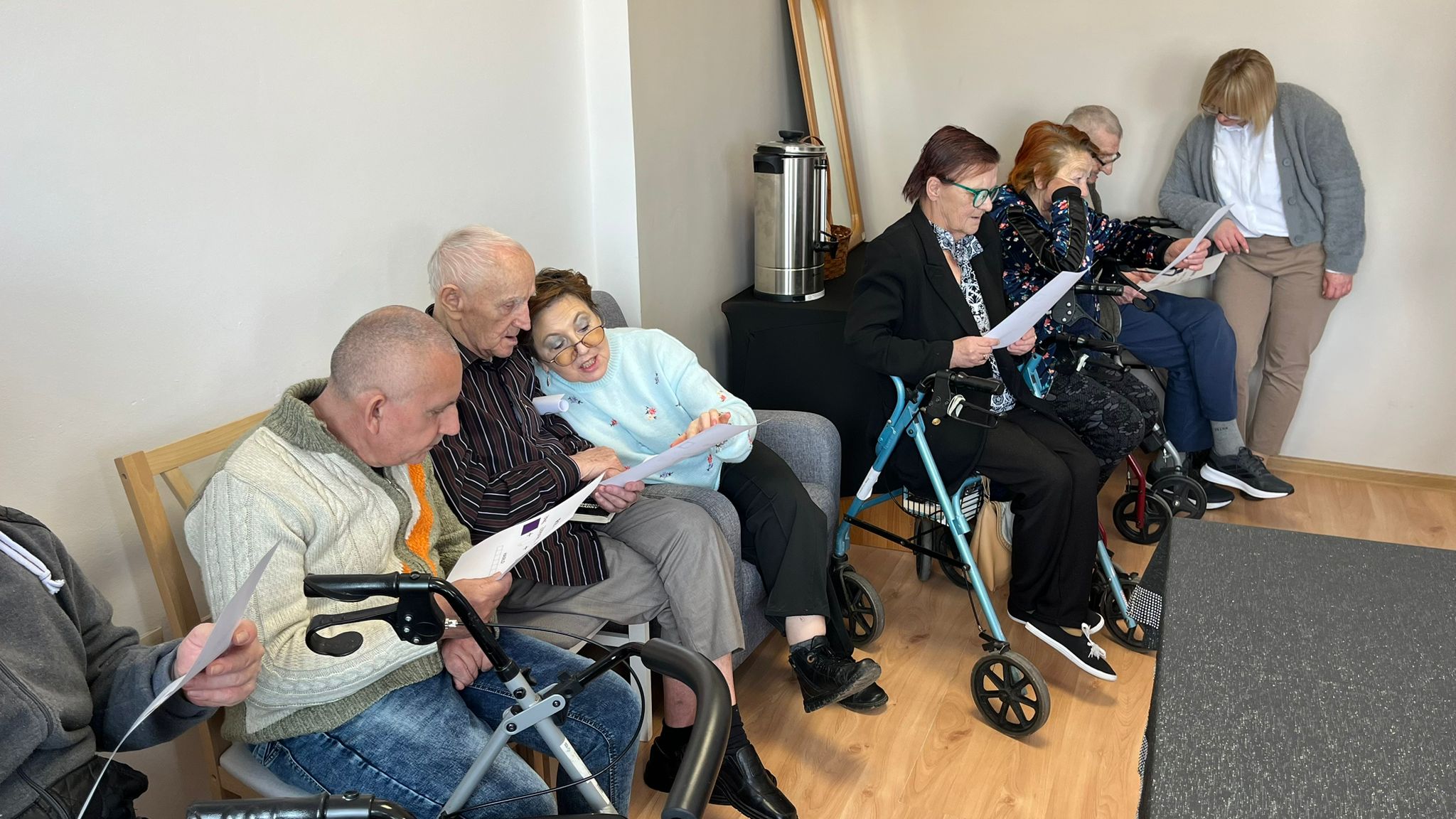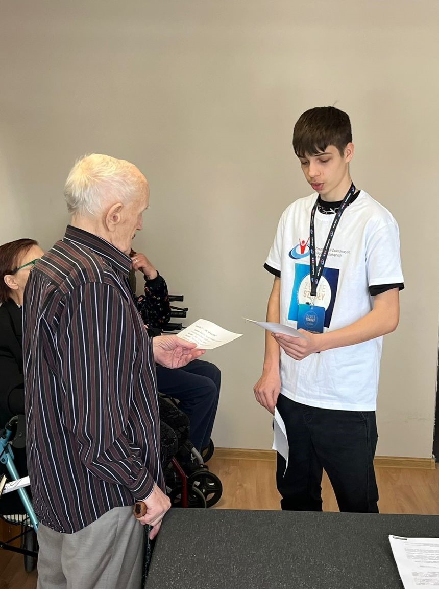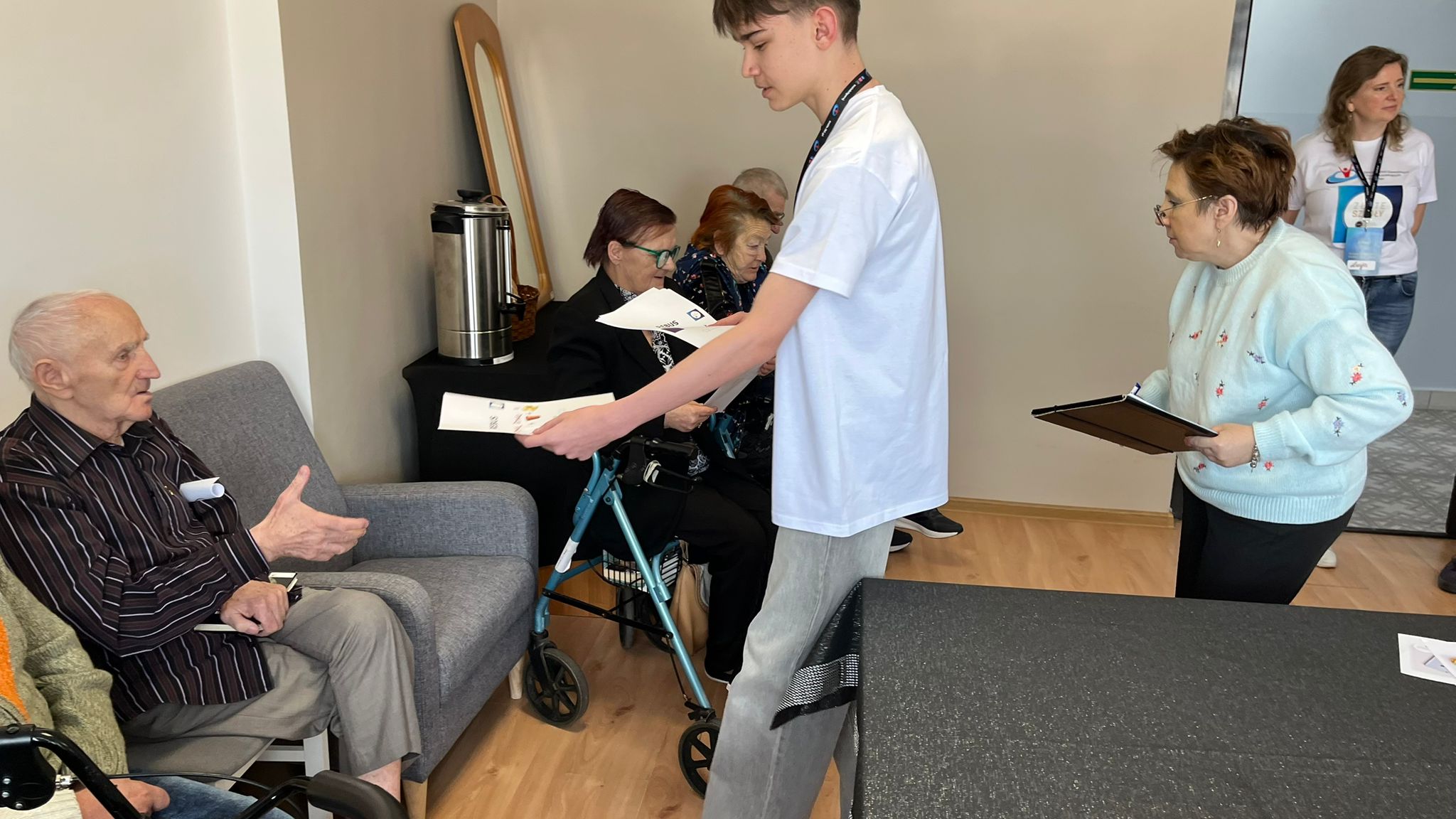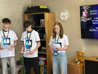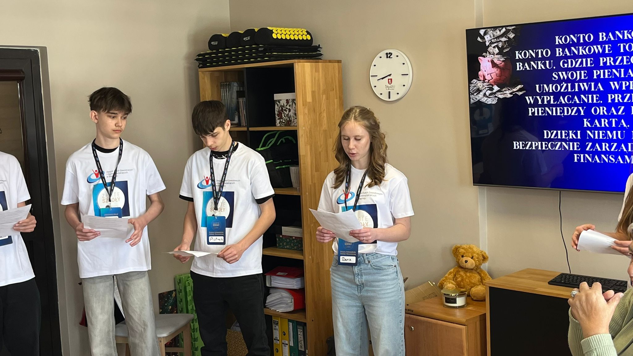 Uczniowie naszej szkoły dzielą się wiedzą o bezpieczeństwie finansów osobistych w Domu Pomocy Społecznej dla Kombatantów w Biłgoraju w ramach Programu „Złote Szkoły NBP”