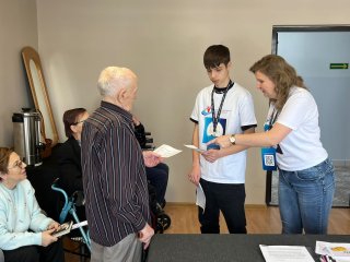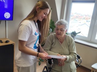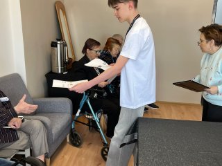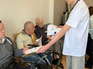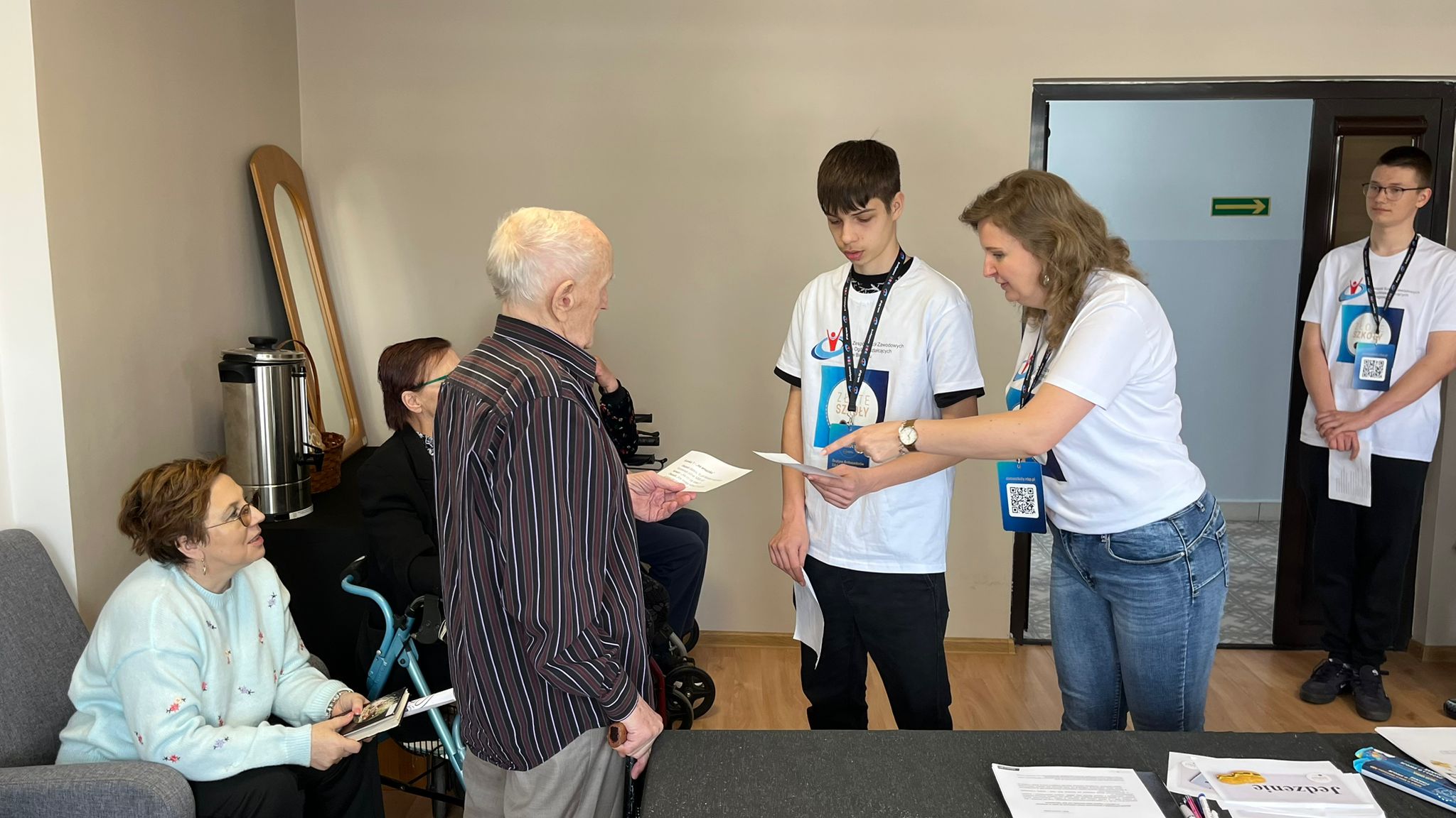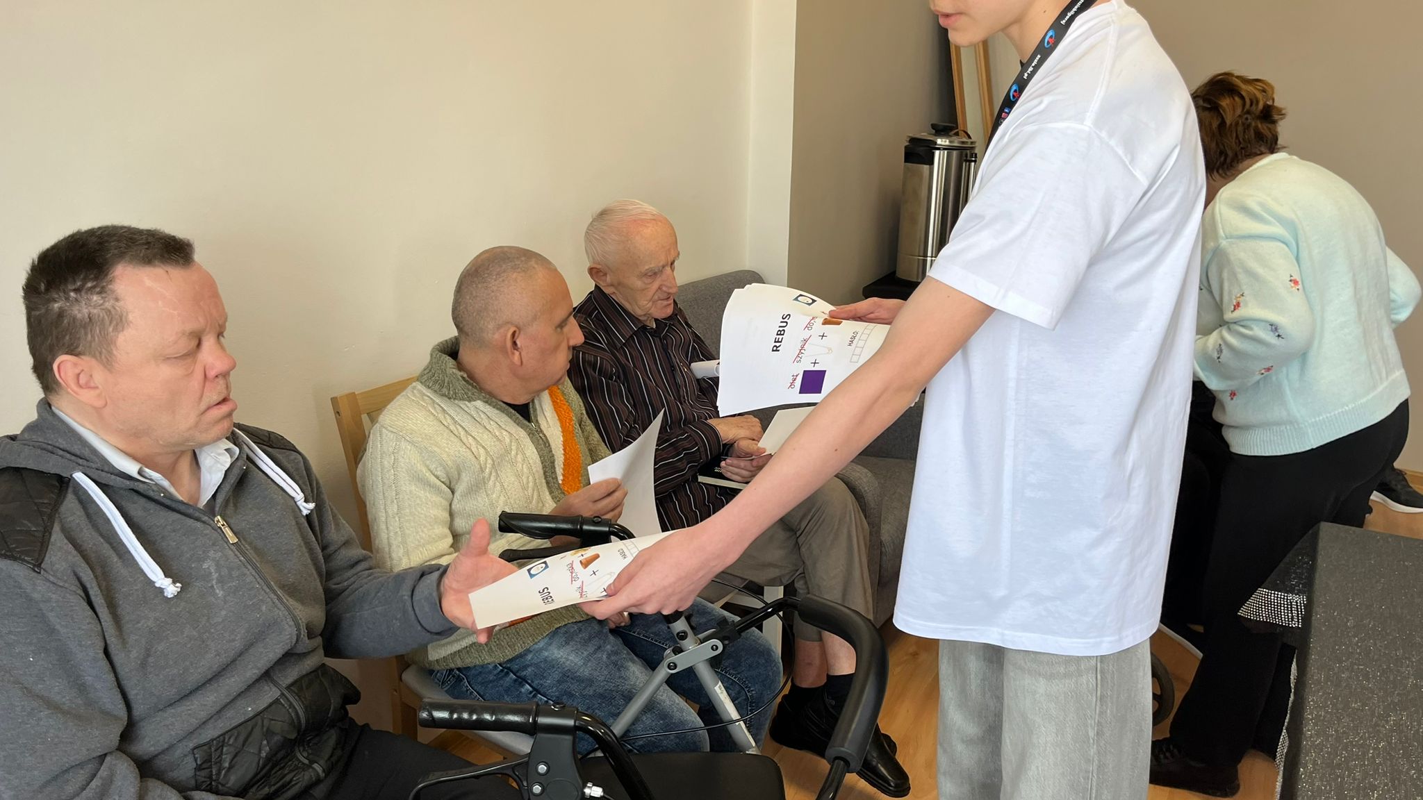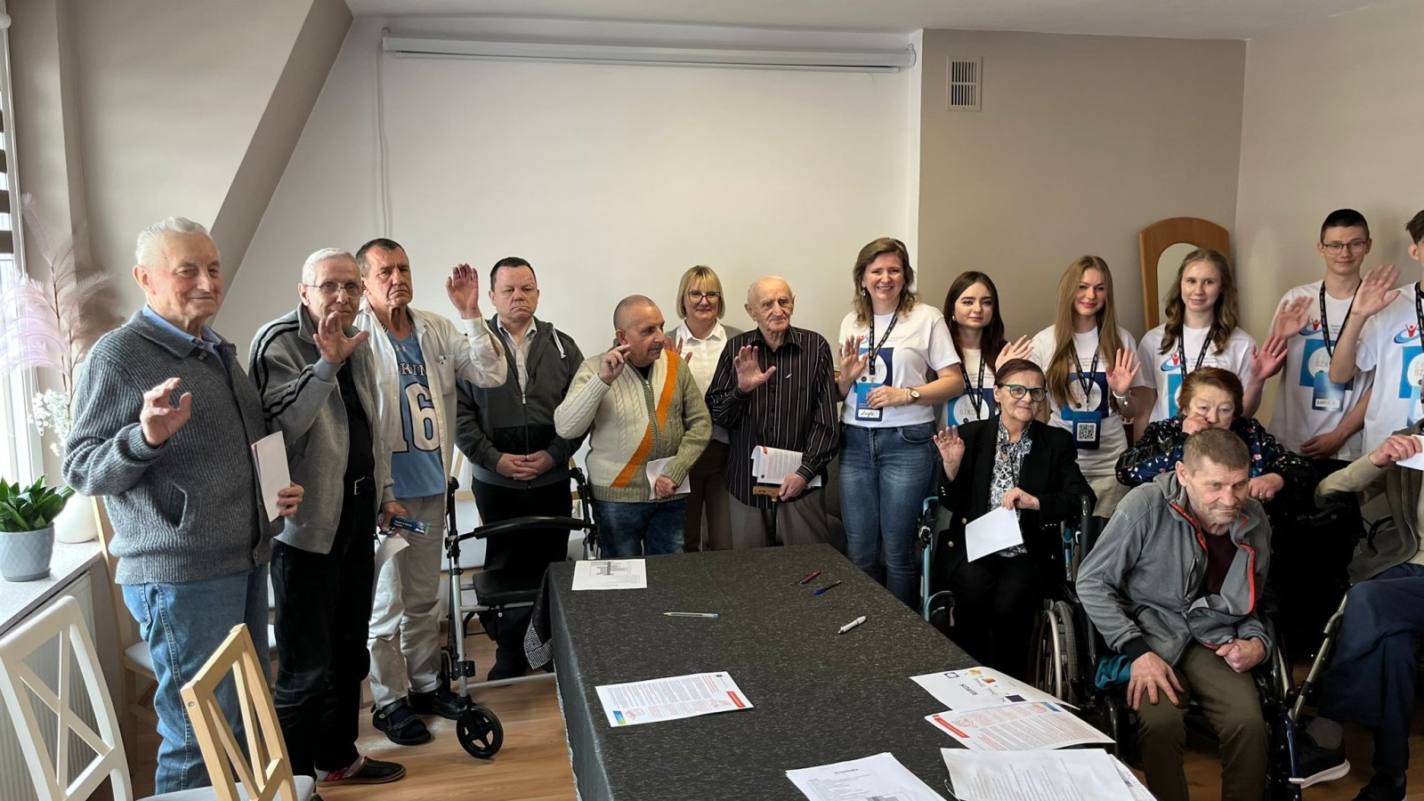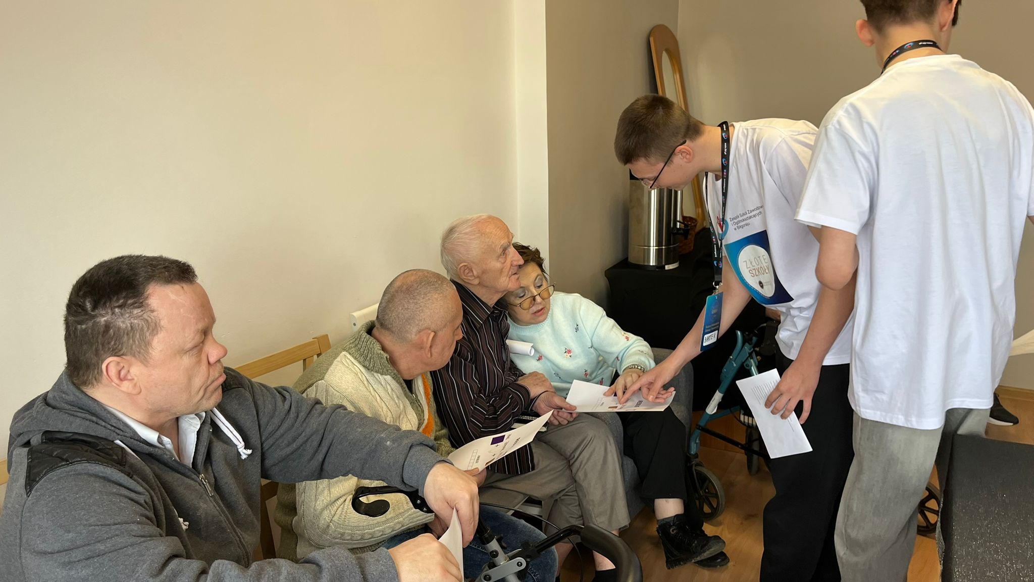Uczniowie naszej szkoły dzielą się wiedzą o bezpieczeństwie finansów osobistych w Domu Pomocy Społecznej dla Kombatantów w Biłgoraju w ramach Programu „Złote Szkoły NBP”