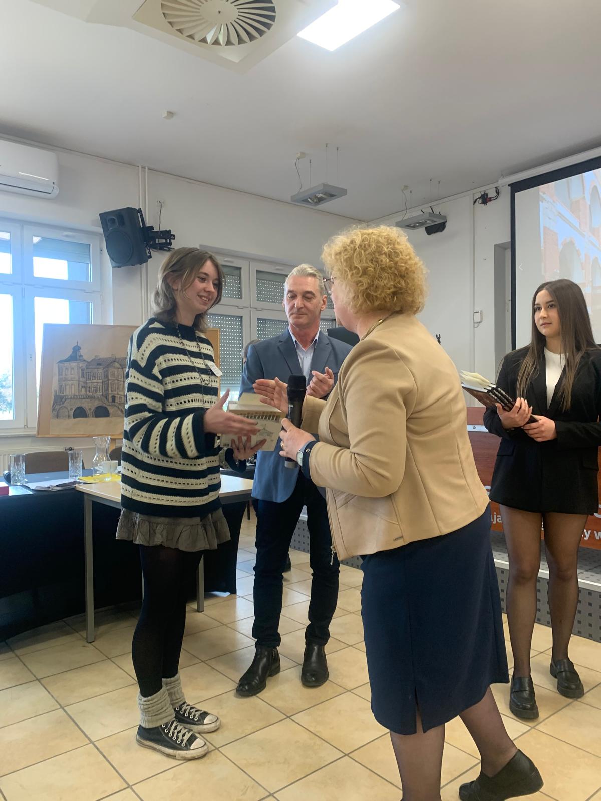 Druga drużyna: Danylo Palashchuk, Zakhar Palashchuk i Magdalena Szczerpakowska również została doceniona. Magda otrzymała nagrodę za wykonanie najlepszego szkicu. Opiekunem była p. Anna Kraczowska-Baednarz.